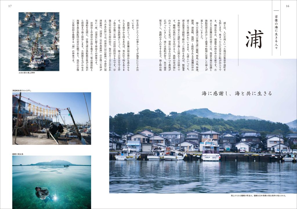 福岡県の宗像市、福津市内にある宗像三女神を祀る宗像大社信仰、自然崇拝を元とする固有の信仰・祭祀が4世紀以来現代まで継承されている点などが評価され、2017年に世界遺産に登録。本業務ではユネスコへの推薦書のデザインや構成に参画(福岡県世界遺産推進室)。登録後は、一般社団法人九州のムラのメンバーとして、地域の取りまとめ、さらには保存管理に向けた各種パンフレットやポスター、冊子を制作させていただきました。